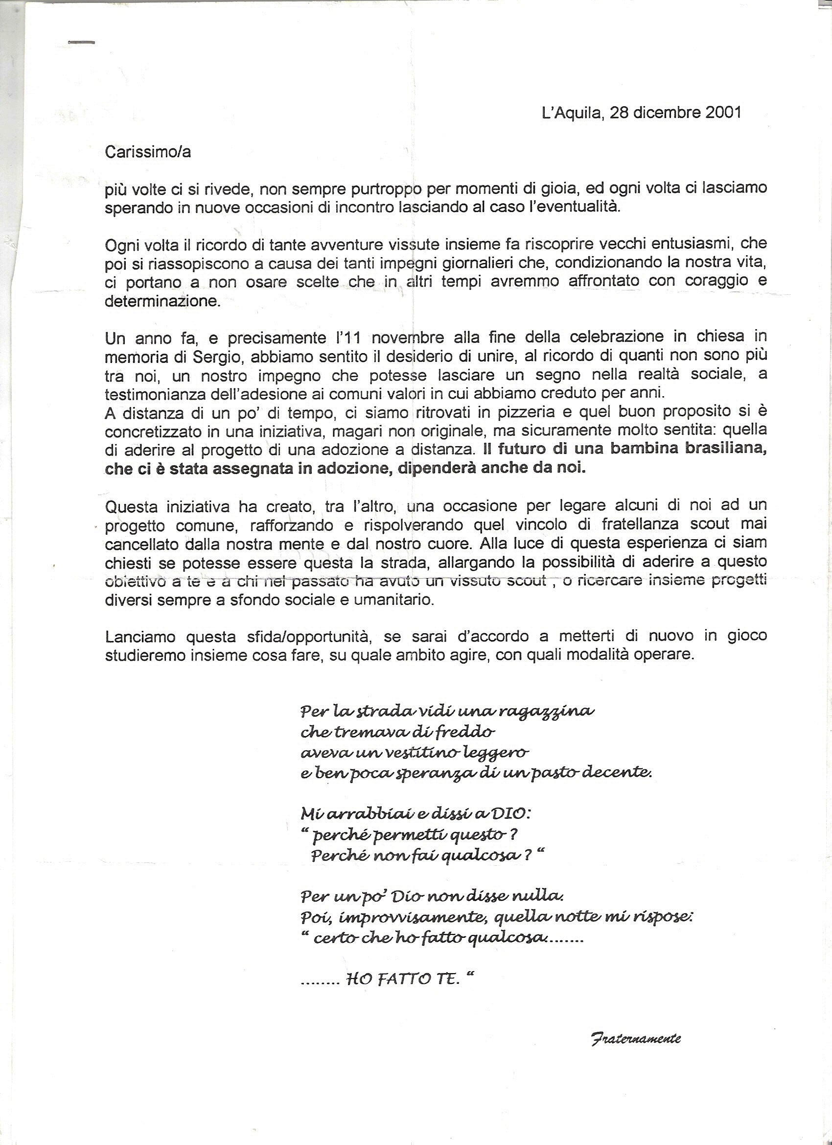2001 Dicembre Adozione a Distanza