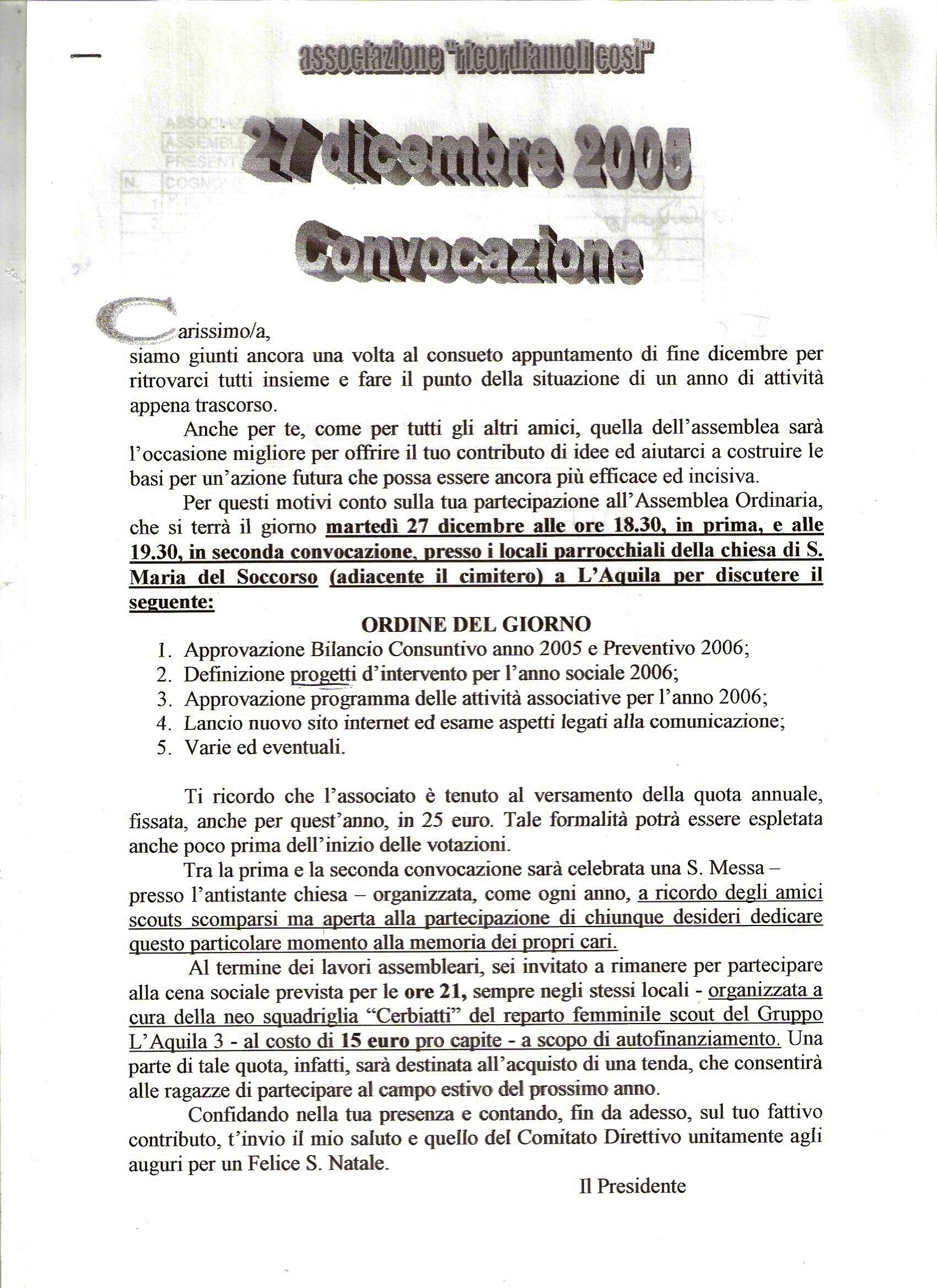 2005 Dicembre Convocazione A.O.