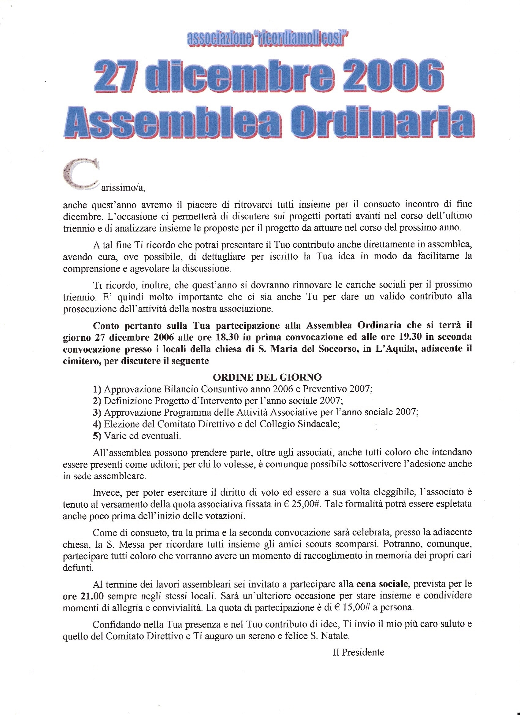 2006 Dicembre Convocazione A.O.