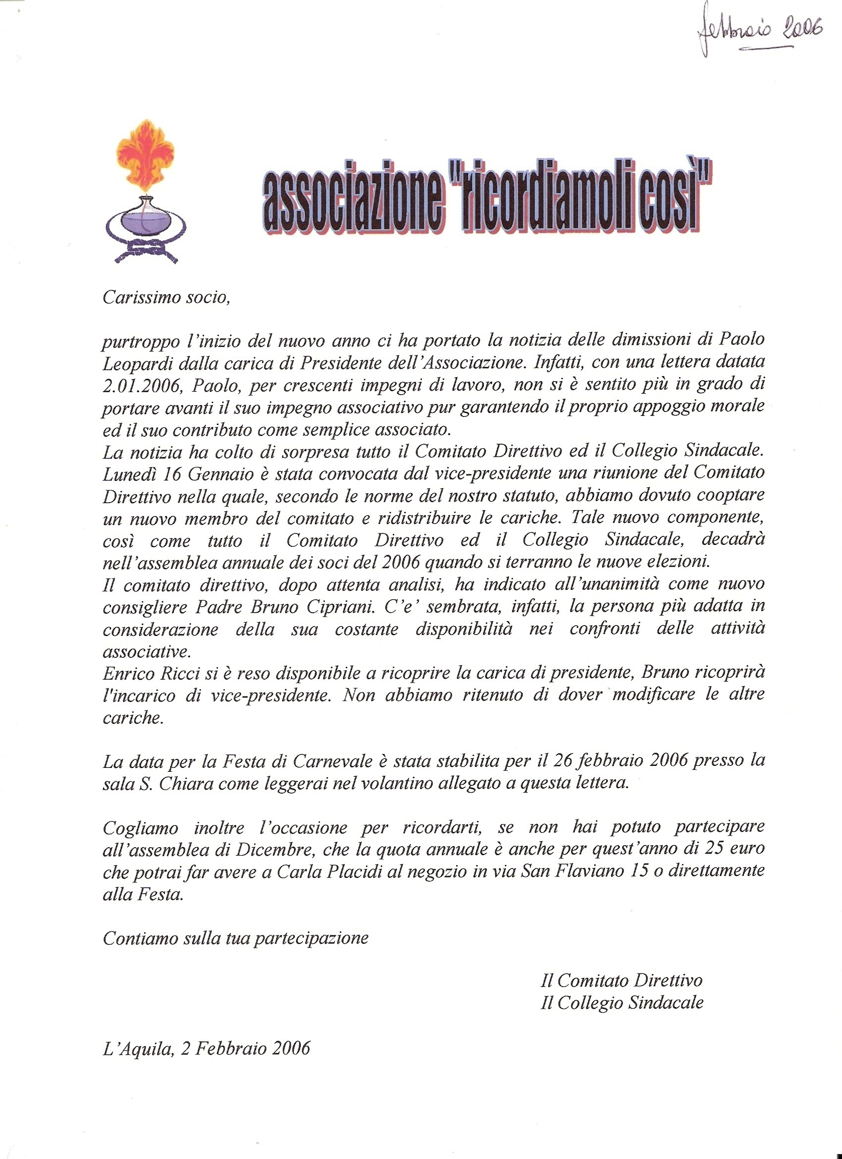 2008 Febbraio Lettera Presidente