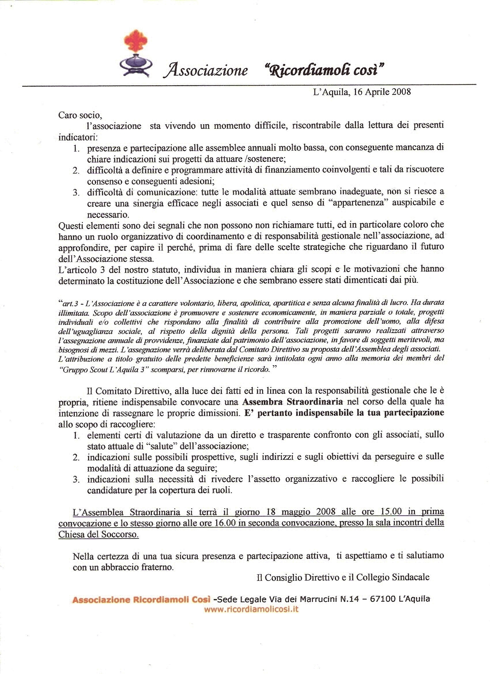 2008 Aprile Convocazione A.S.